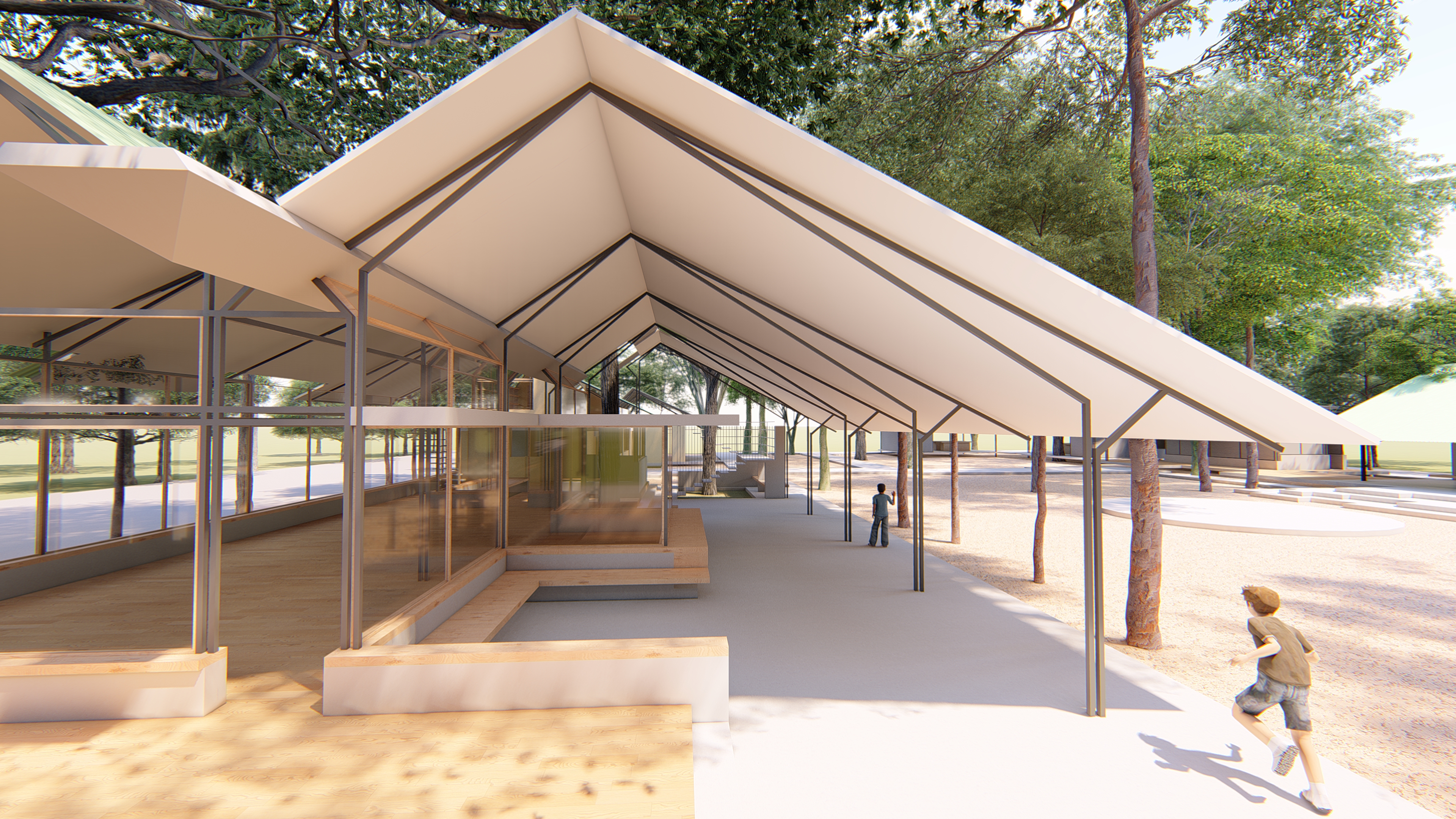 The Design Concept creates a built form and a place that is environmentally friendly and relevant for WWH, the community, and the city to use as an institution, a community centre, and a garden. It is planned as an environmental experience centre and an eco village designed as a series of integrated pavilion-type structures that blur the relationship between the indoors and the outdoors creating an experience of a ‘verandah in the forest’. The architecture uses principles of passive energy and materials with low embodied energy.